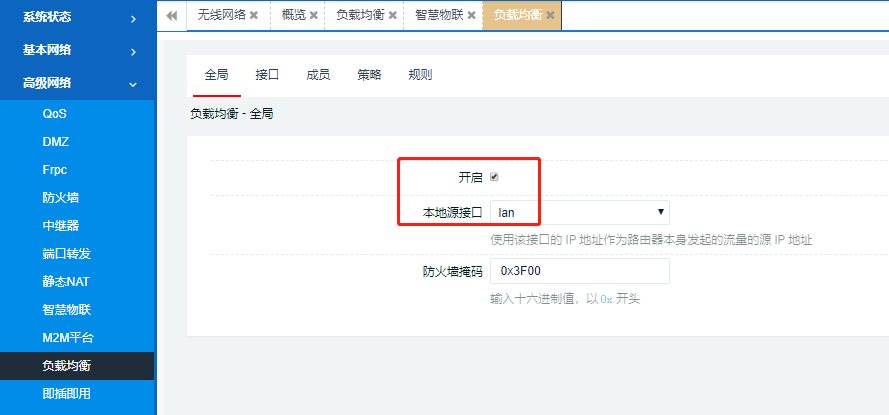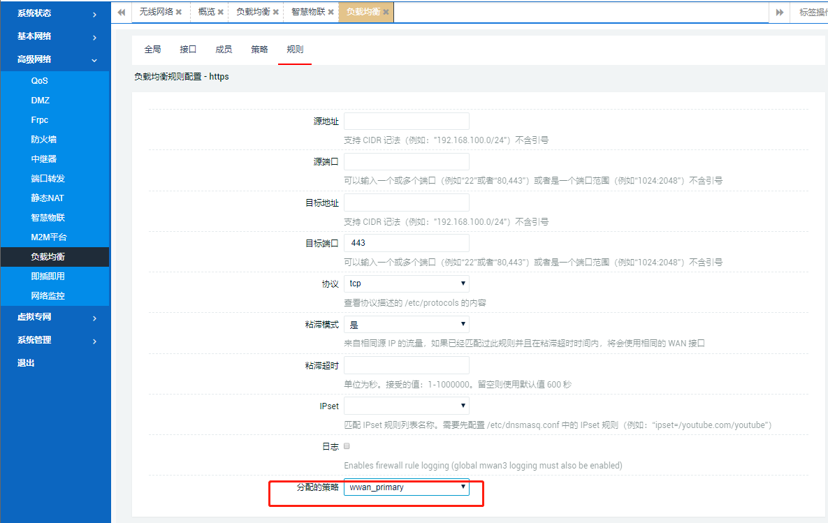 4.负载均衡页面配置无线客户端wwan(新版本默认已预置好wwan相关参数,则跳过4.1-4.3配置内容)